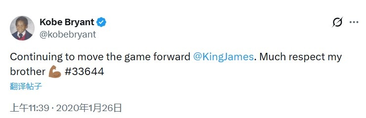 这条动态成为科比生前最后一条推特。